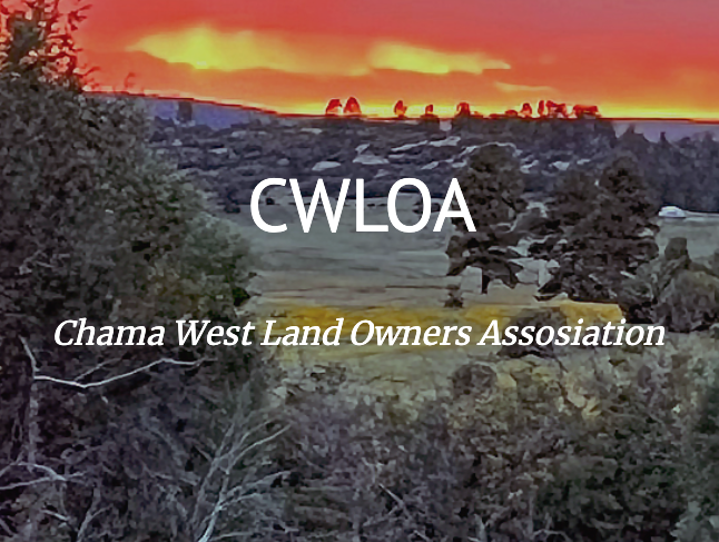 Chama West is an established neighborhood consisting of 95 lots, 10 Acres each with the exception of one 30 acre commercial lot. There are 44 owners of the 95 lots. HOA dues are paid annually by the members. The goal of creating this website is to establish real time communication to share financial details and infrastructure improvement efforts.